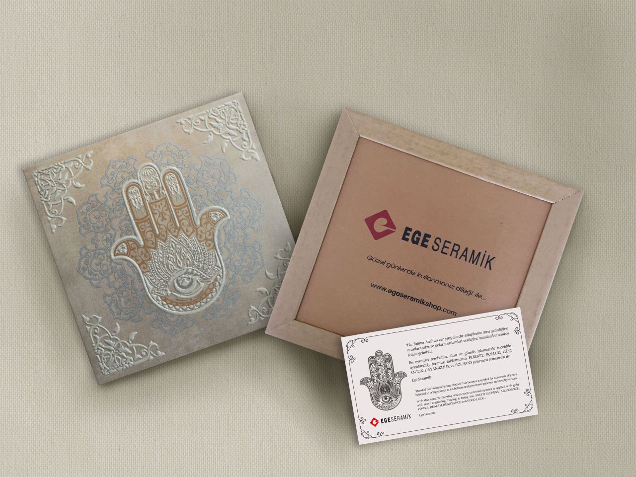 ÜRÜN KODU : 330X330NAZ22 ÜRÜN TANIMI : 330X330 NAZAR VIZON EL MADALYON KUTU AĞIRLIĞI (Kg) : 17,06 EBAT (cm) : 33X33 ‘’ Ürünün yüzeyinde özel aplikasyonlar kullanılması nedeni ile hassas bir şekilde temizlenmesi ve aşındırıcı kimyasal içerikli temizlik malzemeleri kullanılmamasını tavsiye ederiz ‘’ Ürün özel kutusunda tek adet seramikten oluşmaktadır. *Kargo dahildir.