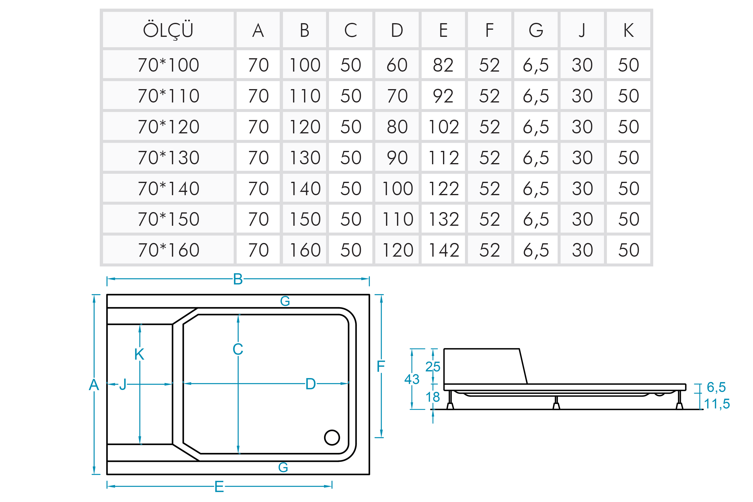 Panelli Dikdörtgen Oturmalı Duş Teknesi