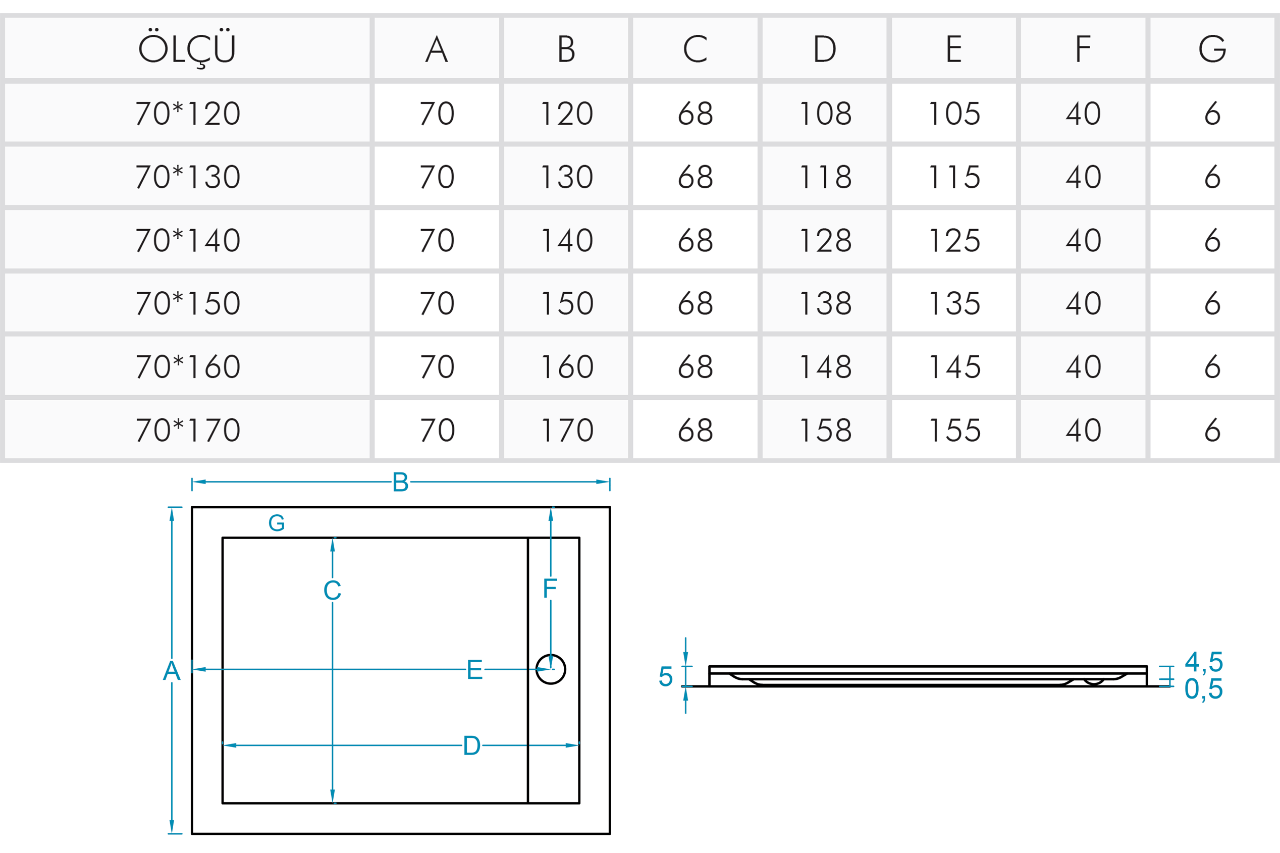 Flat Paslanmaz Sifonlu Dikdörtgen Duş Teknesi