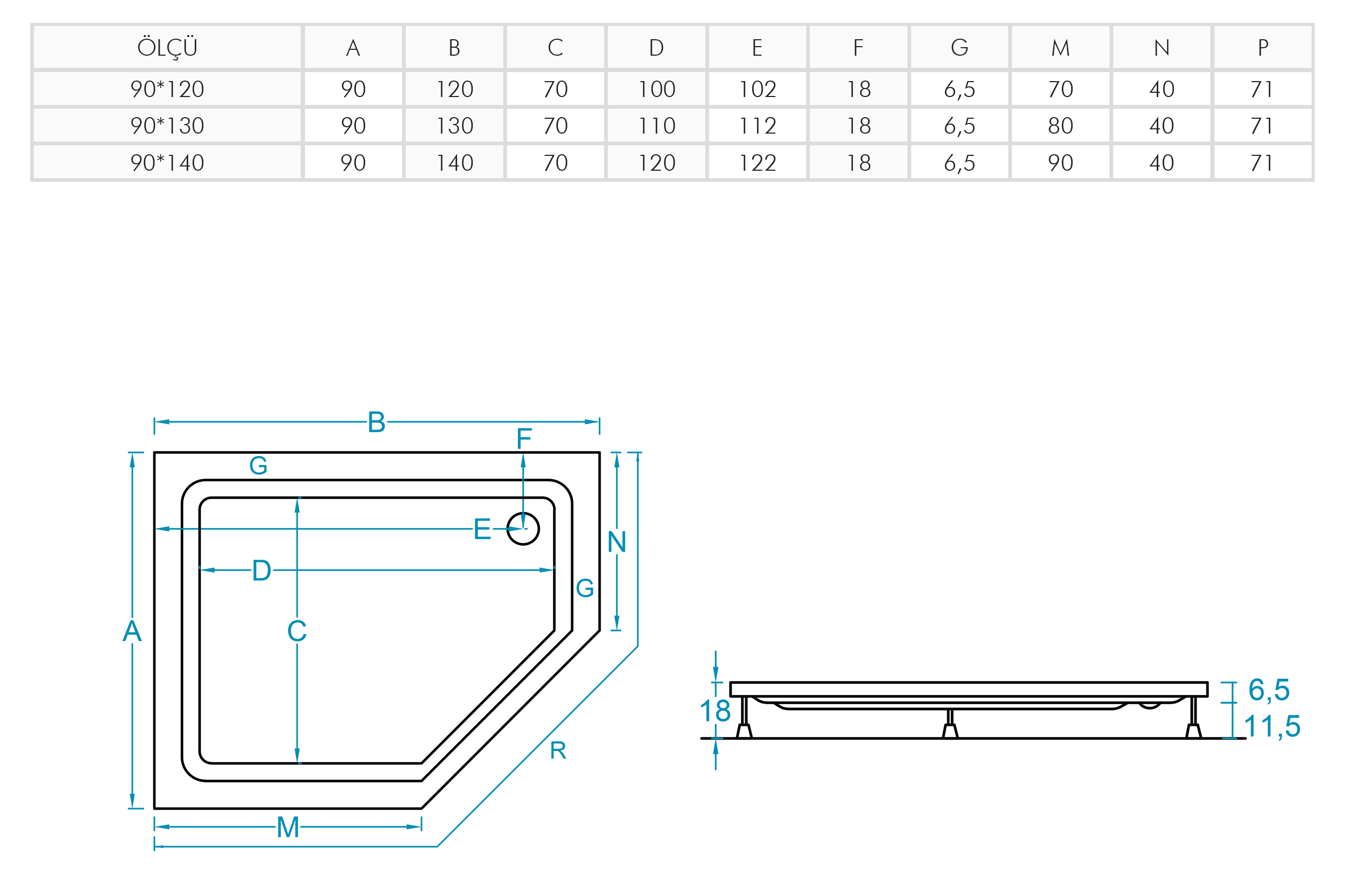 Aquanil TAFF Panelli Beşgen Duş Teknesi