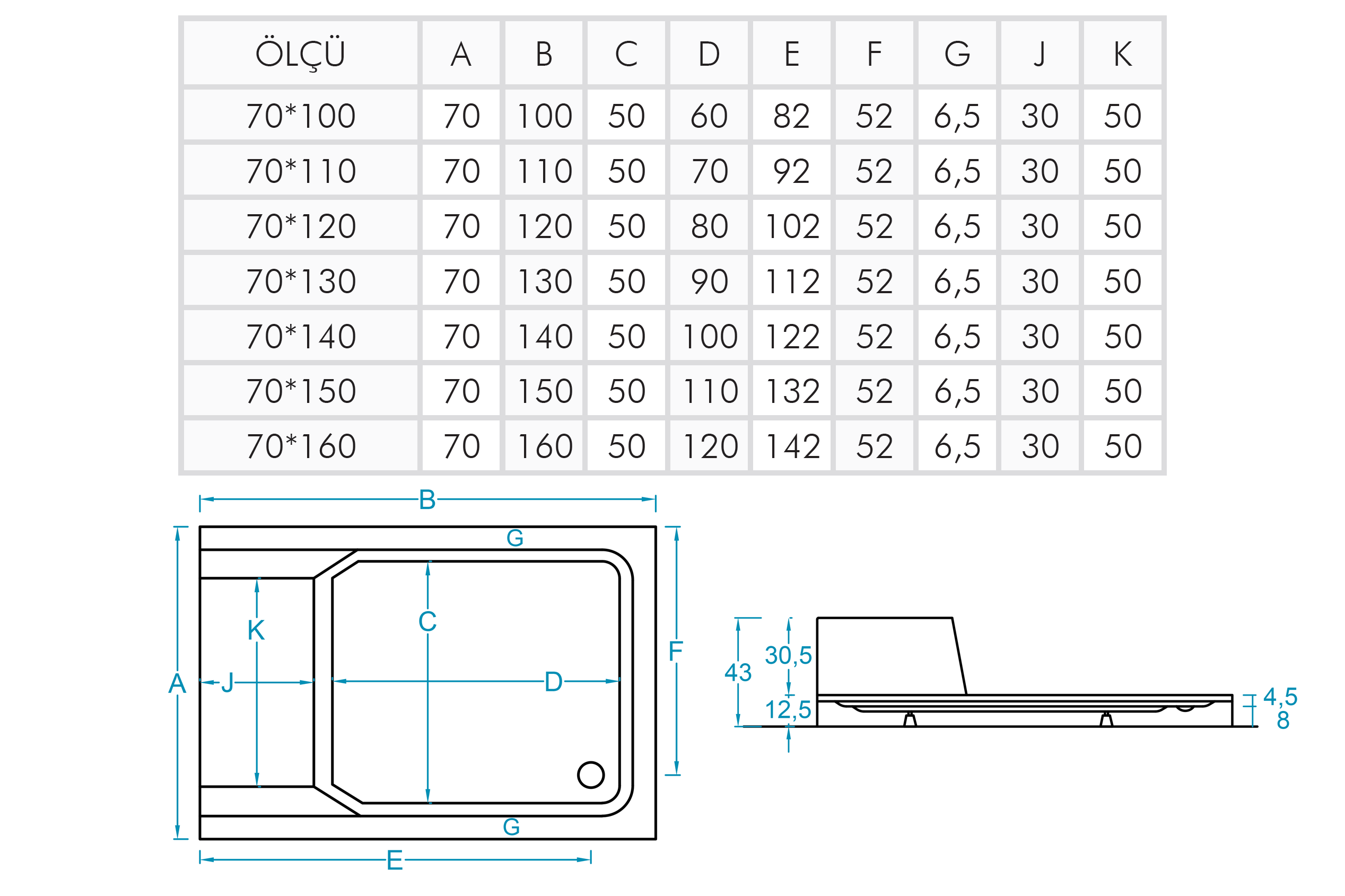 Monoblok Dikdörtgen Oturmalı Duş Teknesi