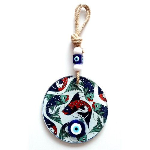Balık Desenli Nazar Boncuklu Füzyon Cam Duvar Dekoru