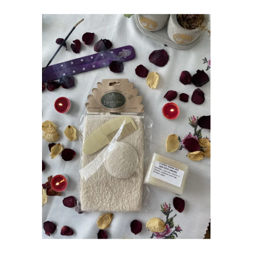 Bebek Banyo Hamam 4’lü Set, bebeklerin hassas cildi için özel olarak tasarlanmış doğal bakım setidir. Setin içeriğinde %100 doğal kabak lifli kese, yumuşak bebek tarağı, eşek sütü sabunu ve yüz kesesi bulunur. Bebeğinizin cildini nazikçe temizler, nemlendirir ve yumuşatır.