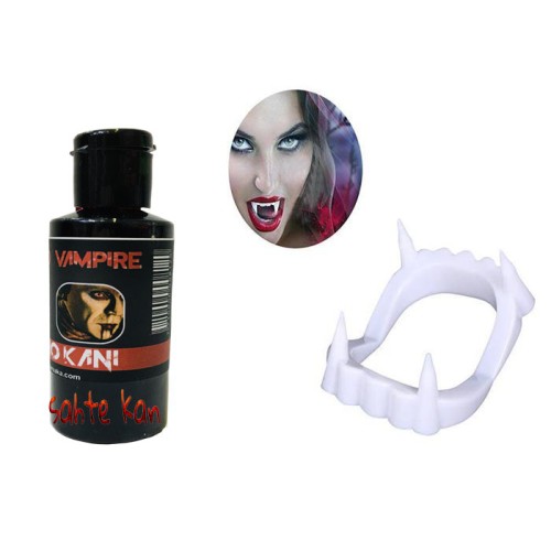 Beyaz Renk Çift Damak Takma Vampir Dişi ve 50 gr Tiyatro Kanı