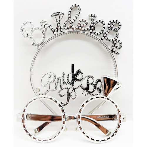 Bride To Be Yazılı Taç ve Bride To Be Yazılı Gözlük Seti Gümüş Renk