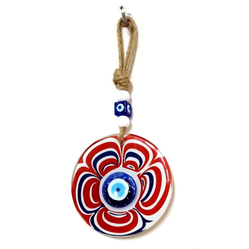 Cam Nazar Boncuklu Kırmızı Şeker Modelli Duvar Süsü