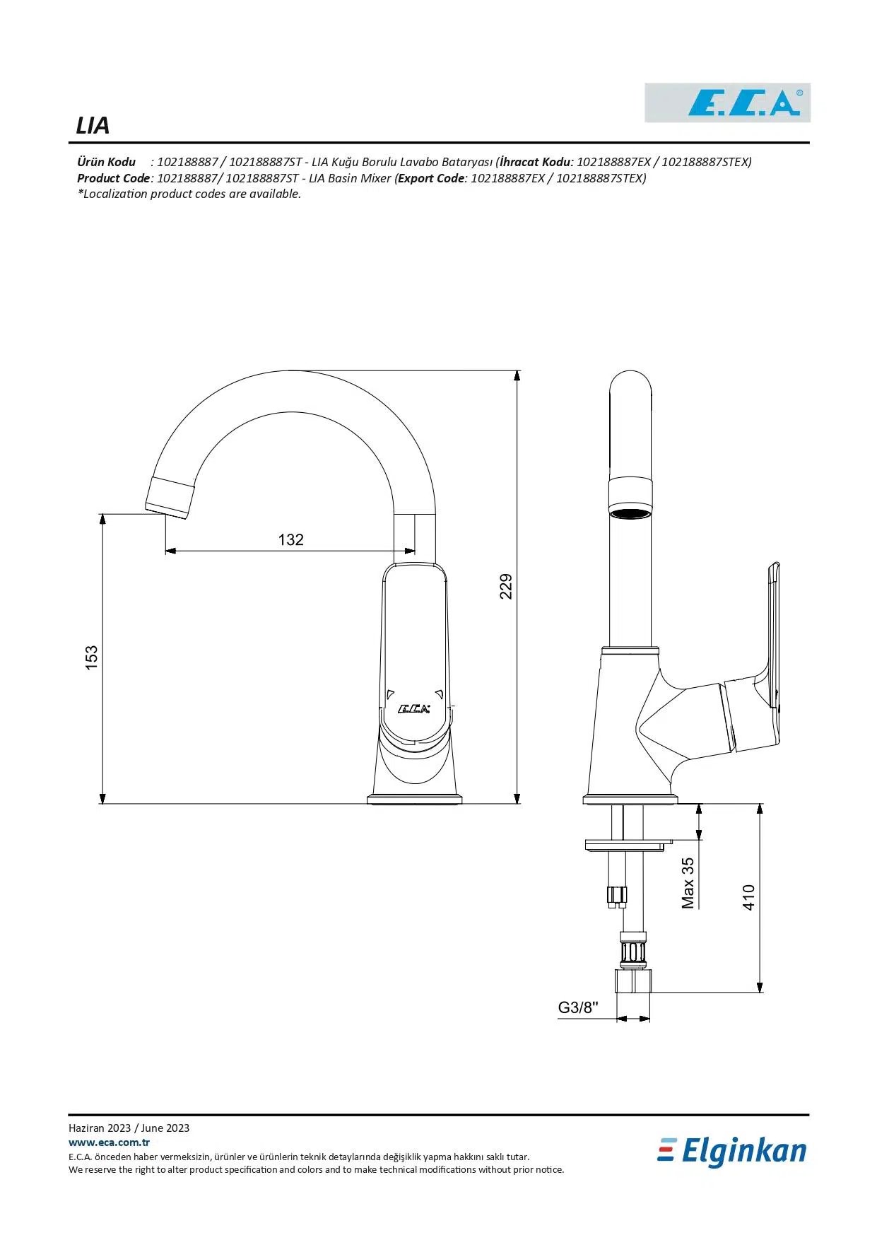 E.C.A.Eca Lia Kuğu Borulu Lavabo Bataryası 102188887