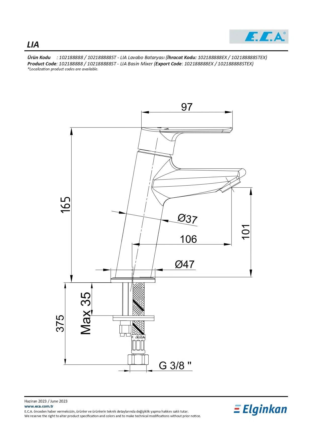 Eca Lia Lavabo Bataryası 102188888 - Lavabo Bataryası | E.C.A. | Asa Yapı