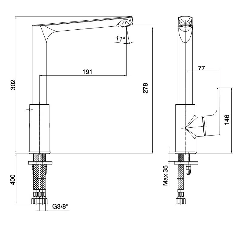 Eca Luna Eviye Mutfak Bataryası Paslanmaz Çelik Inox 102518043 - Mutfak (Eviye) Bataryaları | E.C.A. | Asa Yapı
