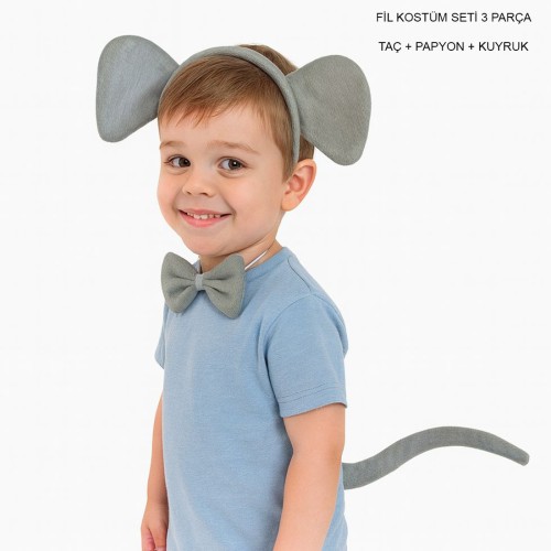 Set içerisinde fil taçı, fil papyonu ve fil kuyruğu yer alır. Tüm parçalar yumuşak dokulu kumaştan üretilmiştir ve çocukların baş ile boyun yapısına kolayca uyum sağlar. Hafif yapısı, hareketleri kısıtlamaz ve uzun süreli kullanımlarda konfor sunar.
