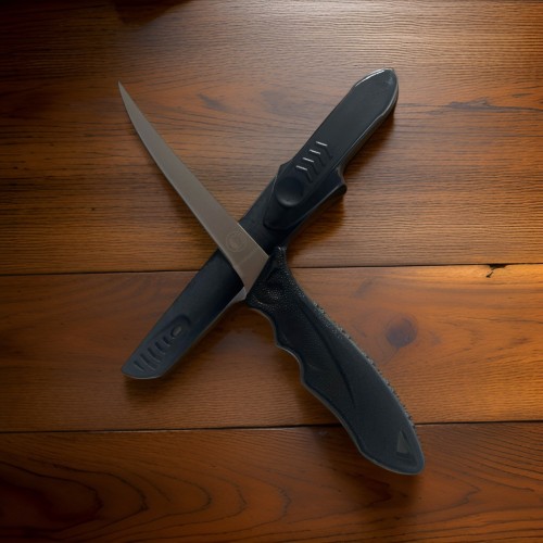 Model: Balıkçı BıçağıUzunluk: 26.5 cmAğırlık: 200 grBıçak Malzemesi: 440C Paslanmaz ÇelikSap Malzemesi: KauçukKullanım Alanı: Balık tutma, avcılık, kampçılıkMenşe Ülke: TürkiyeFlato Balıkçı Bıçağı 26.5cm, balık tutma, avcılık ve kampçılık gibi birçok farklı alanda kullanılabilecek sağlam ve kullanışlı bir bıçak. Keskin ve dayanıklı bıçağı, ergonomik sapı ve sağlam kılıfı ile Flato Balıkçı Bıçağı 26.5cm, fiyatına göre oldukça performanslı bir bıçak.