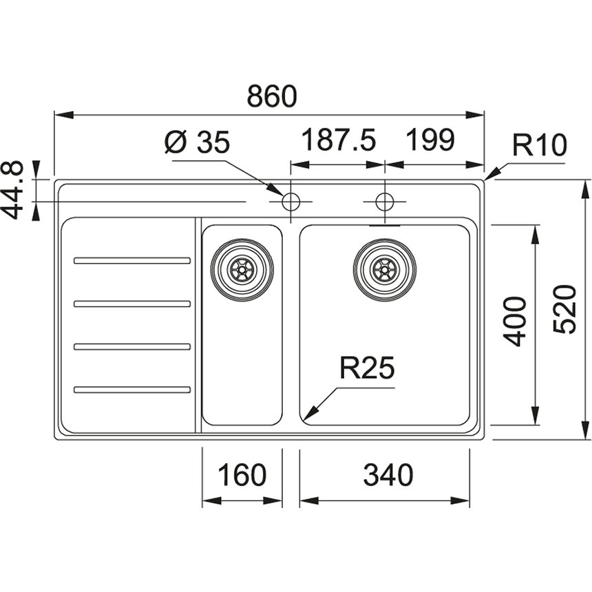 Franke Çelik Eviye Mythos MYX 251-86 1,5 Gözlü Tezgah Üstü ve Tezgaha Sıfır Sol Damlalık - Çelik Eviye | FRANKE | Asa Yapı