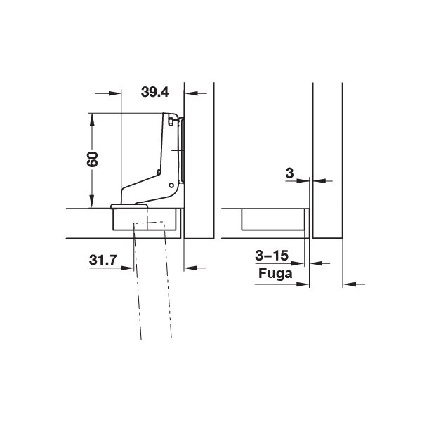 Hafele D. Kalın Kapak Menteşesi Tam Deve 52/7,5 94º