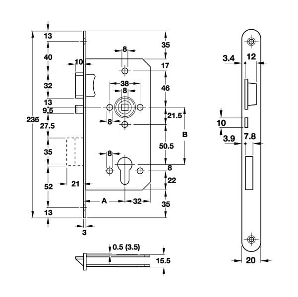 Hafele Emniyet Dilli Kilit Barelli Tip (PC) 55/20mm Sağ Yönlü Paslanmaz Çelik - Gömme Kilitler | HAFELE | Asa Yapı