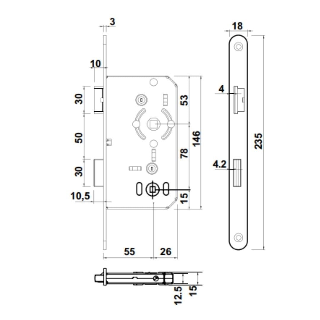 HAFELEHafele Gömme Kilit Banyo Tipi (WC) 55/18mm, Sağ Yönlü Parlak Pirinç Renk