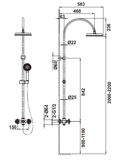 Hafele MONET Entegre Bataryalı Kolonlu Duş Sistemi Mat Siyah - Duş Armatürleri | HAFELE | Asa Yapı
