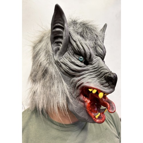 Kafaya Tam Geçmeli Lateks Dil Çıkaran Mavi Gözlü Kurt Maskesi
