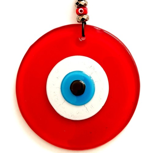 Renk: Kırmızı cam üzerine nazar boncuğu detayları