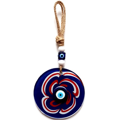 Nazar Boncuklu Lacivert Şeker Modelli Cam Duvar SüsüNazar, koruyucu anlamı ve güçlü sembolizmiyle tasarlanan bu lacivert renk şeker modelli cam duvar süsü, klasik nazar temasıyla modern cam işçiliğini bir araya getirir. Lacivert rengin asaleti, şeker formundaki eğlenceli tasarımla birleşerek dekorasyona hem şıklık hem de dikkat çekici bir görünüm kazandırır.Ürünümüz füzyon cam malzeme kullanılarak tamamen el işçiliğiyle üretilmektedir. Füzyon cam tekniği sayesinde camın renkleri canlı ve parlak bir görünüm kazanır. El emeğiyle hazırlanmış olması, her bir ürünü kendine özgü ve özel kılar.Cam nazar boncuklu şeker modelli duvar süsümüz 12 santimetre çapındadır. İp dahil toplam uzunluğu 26 santimetredir. Hafif ve dengeli yapısı sayesinde duvara, kapıya, pencere önüne veya farklı dekoratif alanlara kolaylıkla asılabilir.