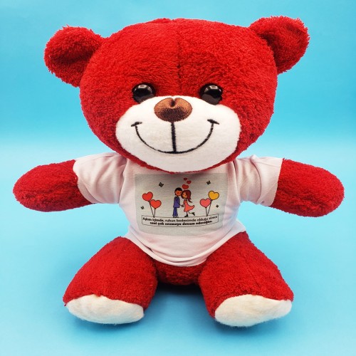 Sevimli Çiftler Tişörtlü Kırmızı AyıSevimli çiftler tişörtlü kırmızı ayı, mutlu aşıklar temalı tasarımıyla hem romantik hem de sevimli bir hediye seçeneği sunar. Farklı tişört modelleri ve seçenekleriyle peluş ayıcık, sevgilinize veya sevdiklerinize özel günlerde verebileceğiniz en anlamlı hediyelerden biridir.Peluş ayıcık modelleri; kuzu, tavşan, fil ve daha birçok sevimli peluş çeşidiyle birlikte en tatlı hediye alternatifleri arasında yer alır. Yumuşacık peluş dokusu ve kırmızı rengi sayesinde odalara sıcak ve romantik bir atmosfer katar. Doğum günü, yılbaşı, sevgililer günü gibi özel günler için oldukça uygun bir hediye tercihidir.Sevimli Çiftler Tişörtlü Kırmızı Ayı Özellikleri: