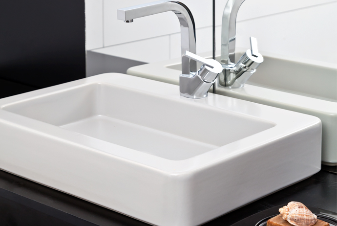 61x41 cm dörtgen batarya delikli tezgah üstü lavabo, modern tasarım ve geniş renk seçenekleriyle şık ve fonksiyonel kullanım sunar.